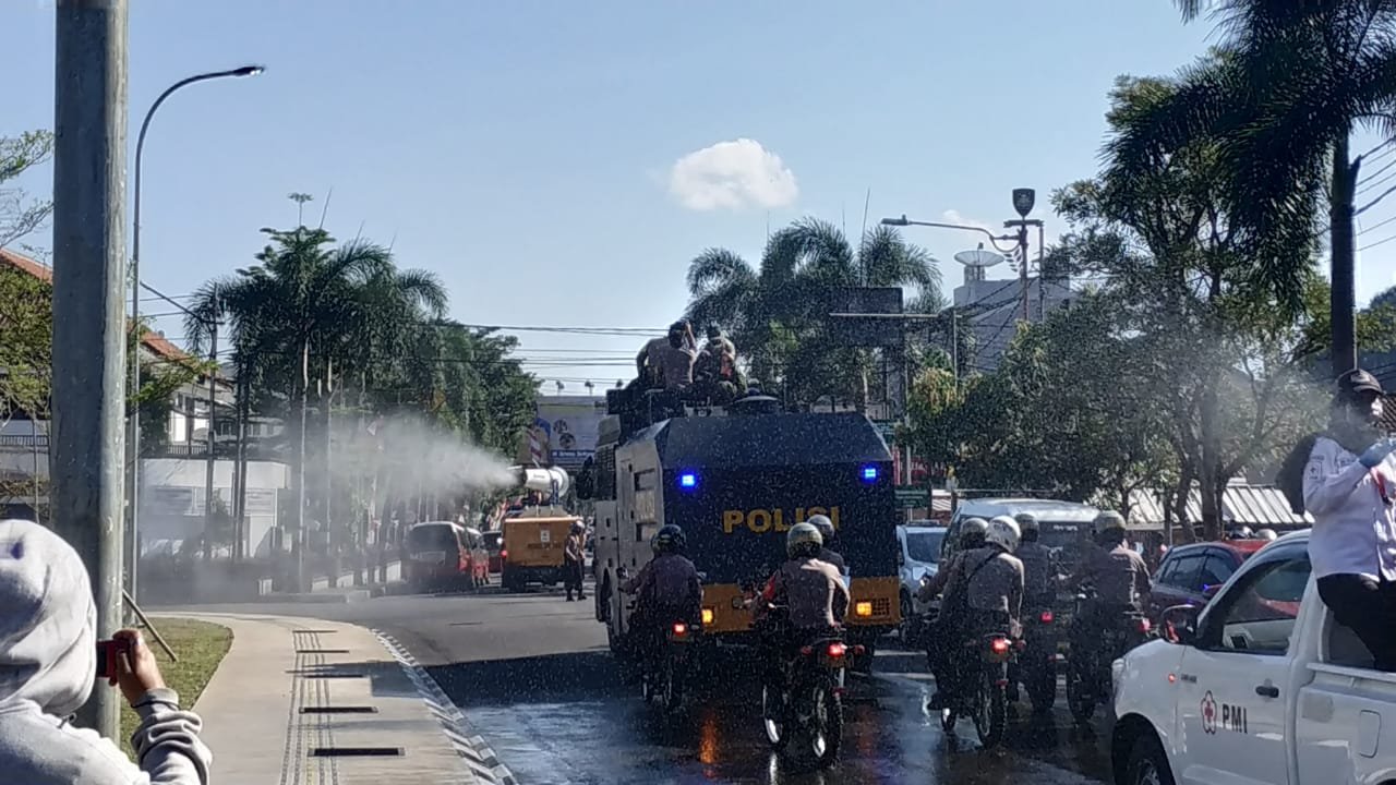 Sumedang, KORSUM – Untuk mengantisipasi melonjaknya kasus konfirmasi positif Covid-19. Forum Komunikasi Pimpinan Daerah (Forkopimda) Sumedang bersama dengan Palang Merah Indonesia (PMI) Provinsi Jawa Barat melakukan penyemprotan disinpektan secara masal di seluruh wilayah Sumedang, Jumat (21/8).