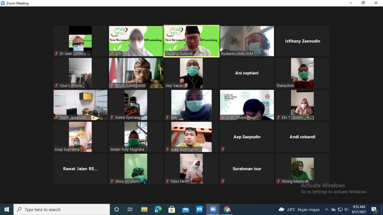 Jajaran karyawan RSUD Sumedang yang dipimpin langsung oleh direktur RSUD Sumedang Dr. Dr Aceng Solahudin Ahmad, MKes mengadakan do’a bersama melalui zoom meeting.