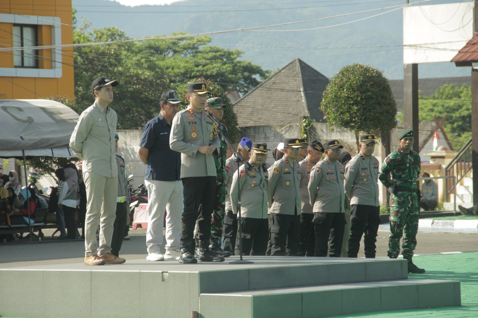 Apel bersama ini dipimpin langsung oleh Kapolres Sumedang AKBP Sandityo Mahardika, S.I.K., Dandim 0610/Sumedang Letkol Arh Kusuma Ardianto, S.I.P., M.Han, Ketua DPRD Sumedang H. Sidik Jafar, S.E., serta Wakil Bupati Sumedang M. Fajar Aldila, S.H., M.Kn. yang hadir mewakili Bupati Sumedang.