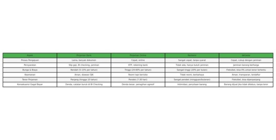 Dalam situasi ekonomi yang semakin dinamis, kebutuhan akan pembiayaan cepat dan aman semakin meningkat. Namun, dengan banyaknya opsi pembiayaan yang tersedia, penting bagi masyarakat untuk memahami mana yang resmi, aman, dan menguntungkan, serta mana yang harus dihindari. deGadai, platform gadai terpercaya di Indonesia, hadir untuk memberikan edukasi dan solusi terbaik dalam memenuhi kebutuhan finansial Anda.