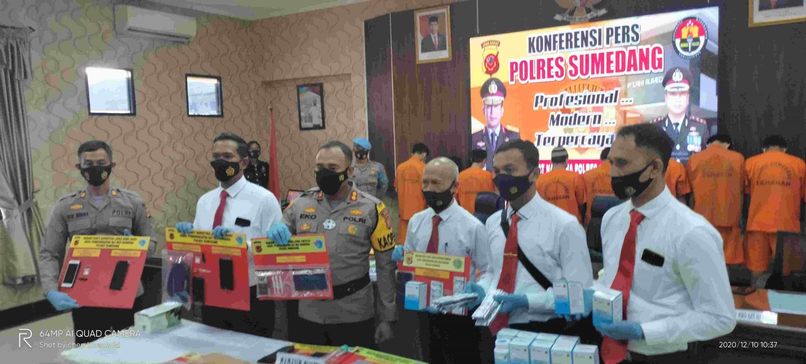 Kapolres Sumedang AKBP Eko Prasetyo Robbyanto mengatakan, selama Operasi Antik 2020, Sat Narkoba Polres Sumedang berhasil meringkus 10 orang tersangka Narkotika berbagai jenis, seperti Sabu, Narkotika Sintetis/tembakau gorila dan jenis obat keras.