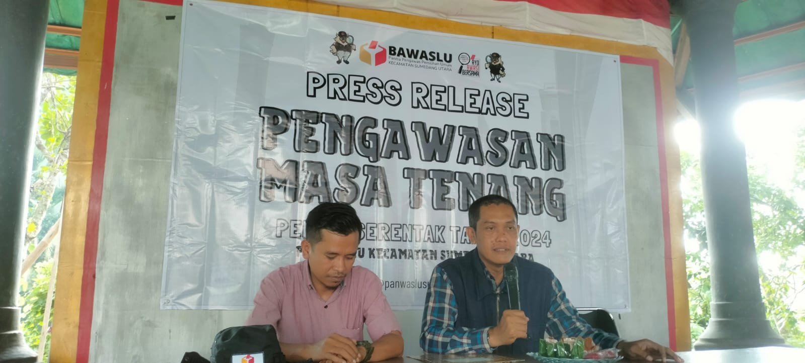 “Berbagai potensi pelanggaran di masa tenang dan jelang hari H pencoblosan Pemilu 2024 dimungkinan dapat saja terjadi,” jelas Ketua Panwaslu Sumedang Utara Dadang Suryana didampingi Kordinator Divisi hukum Pencegahan Pelanggaran dan Hubungan Masyarakat Agus Taryana saat menggelar Press Release Pengawasan Masa Tenang Pemilu 2024 di Sekretariat Panwaslu Sumedang Utara Senin, 12 Februari 2024.