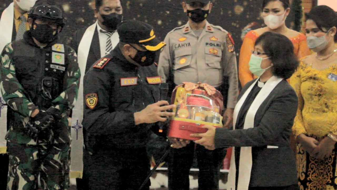 “Pelaksanaan Ibadah Perayaan Misa Natal dengan Jemaat terbatas, ada yang melaksanakan perayaan secara virtual seiring dengan kondisi aturan Prokes Covid-19 yakni jemaat di gereja sebanyak 50% dari kapasitas total gereja”. Tutur Kapolres