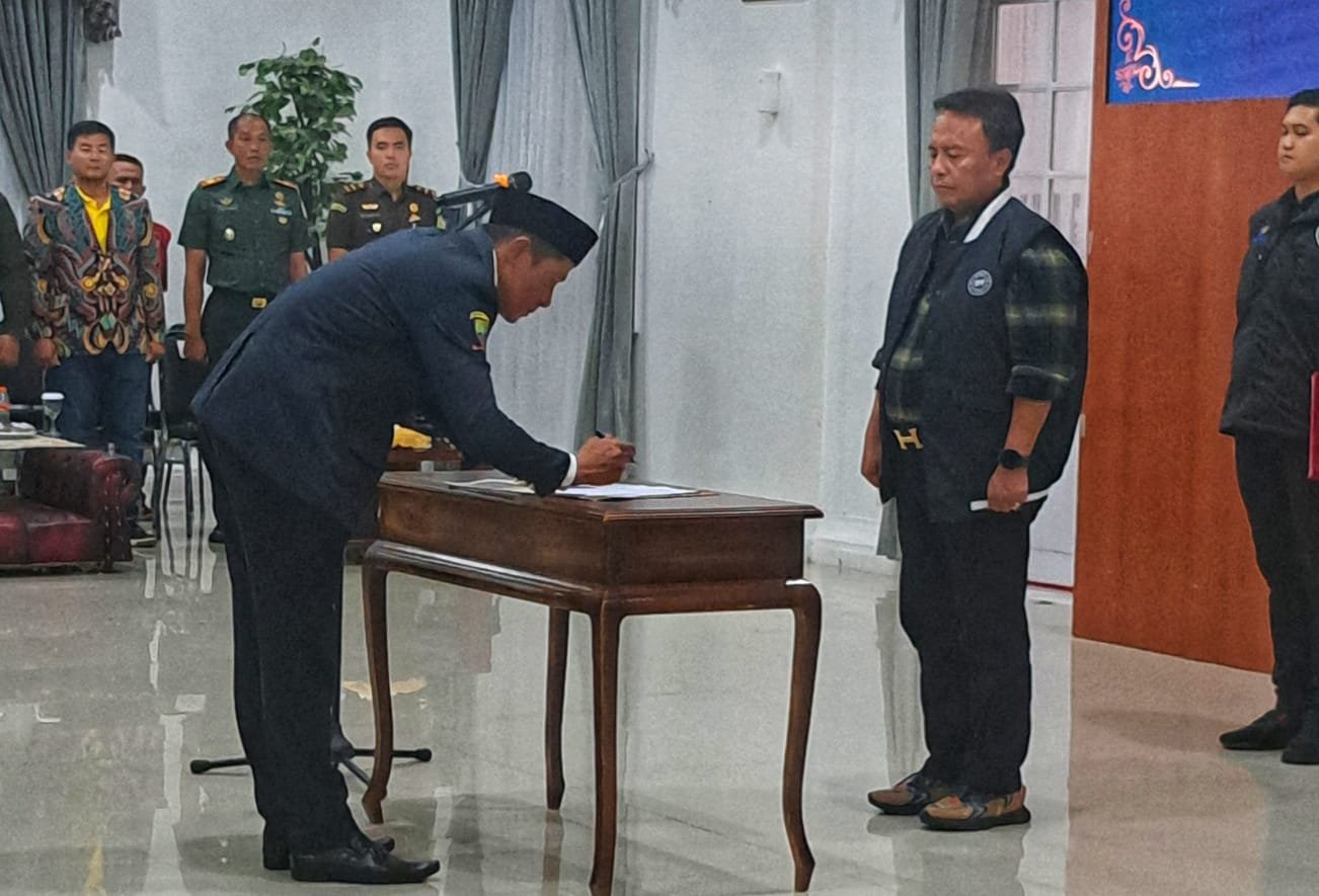 SUMEDANG, KORSUM.ID – Pj. Bupati Sumedang Herman Suryatman mengukuhkan pengurus Karang Taruna Kabupaten Sumedang periode 2023-2028 di Gedung Negara, Selasa (16/1/2024).