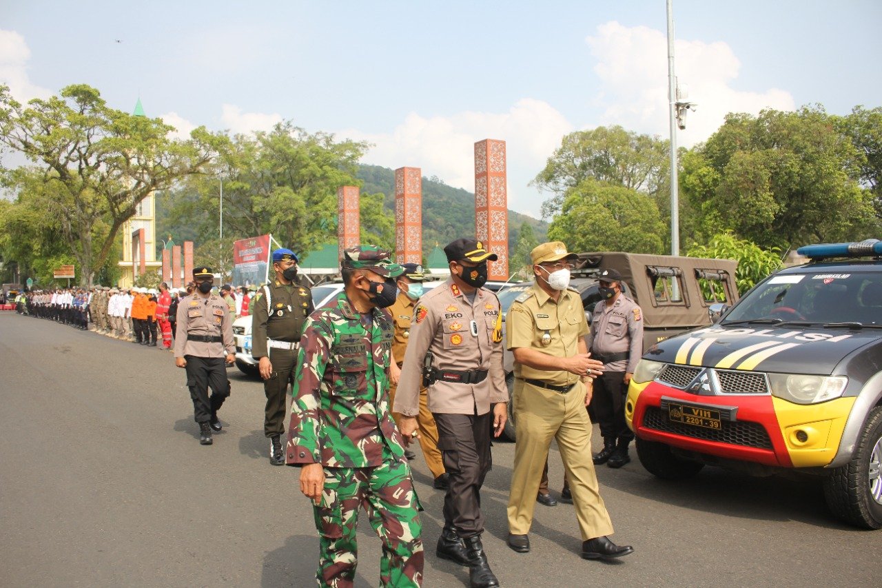 Hadir pada Apel gelar pasukan kesiapan pengamanan tersebut, unsur Forkopimda, para Kepala Perangkat Daerah, unsur TNI, Polri, Kesbangpol, PMI, BPBD dan Linmas.