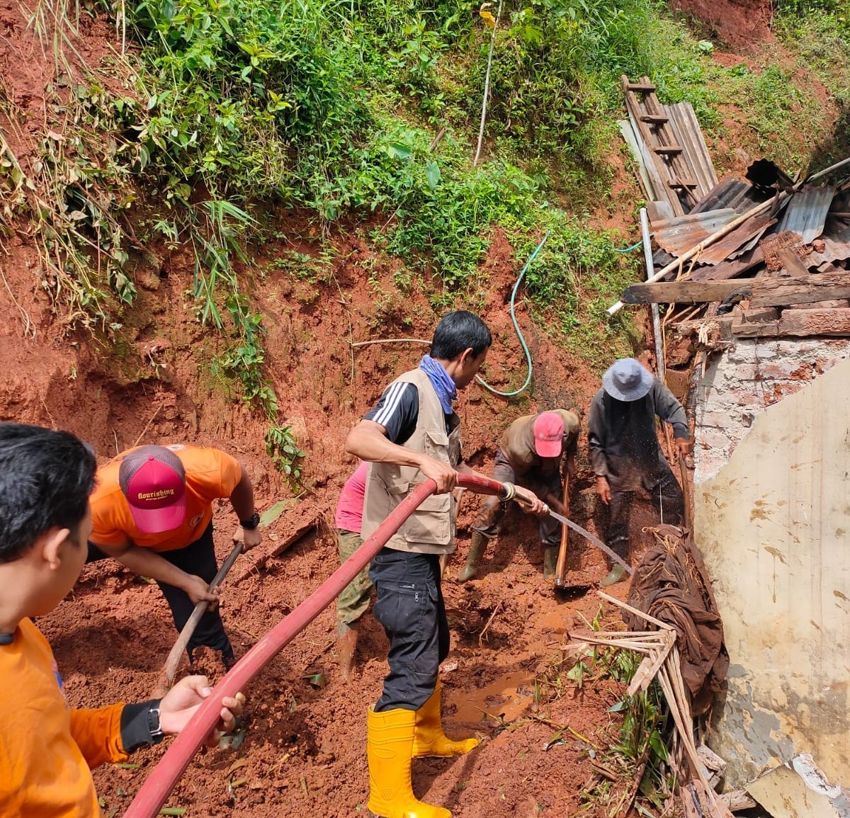 Saat ini, sambung Atang, tim Pusdalops BPBD Kabupaten Sumedang bersama dari TNI POLRI dan dibantu warga setempat langsung mengassisment ke lokasi kejadian dan membantu penangan pembersihan material longsoran