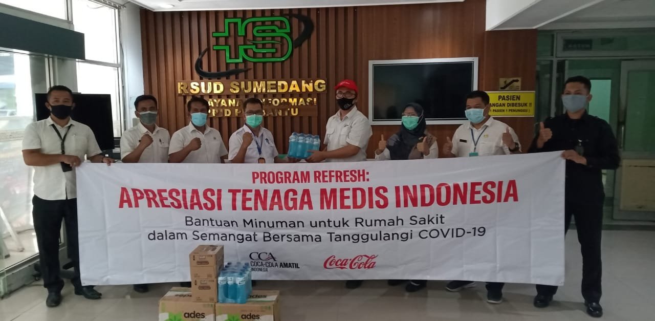 Sumedang, KORSUM – Sebagai bentuk komitmen untuk bantuan kemanusiaan dalam menghadapi pandemi Covid-19 di Indonesia, Coca-Cola Amatil Indonesia (CCAI) bersama Coca-Cola Indonesia (CCI) menyerahkan satu juta paket produk minuman kepada sejumlah Rumah Sakit Rujukan Covid-19 di Indonesia.