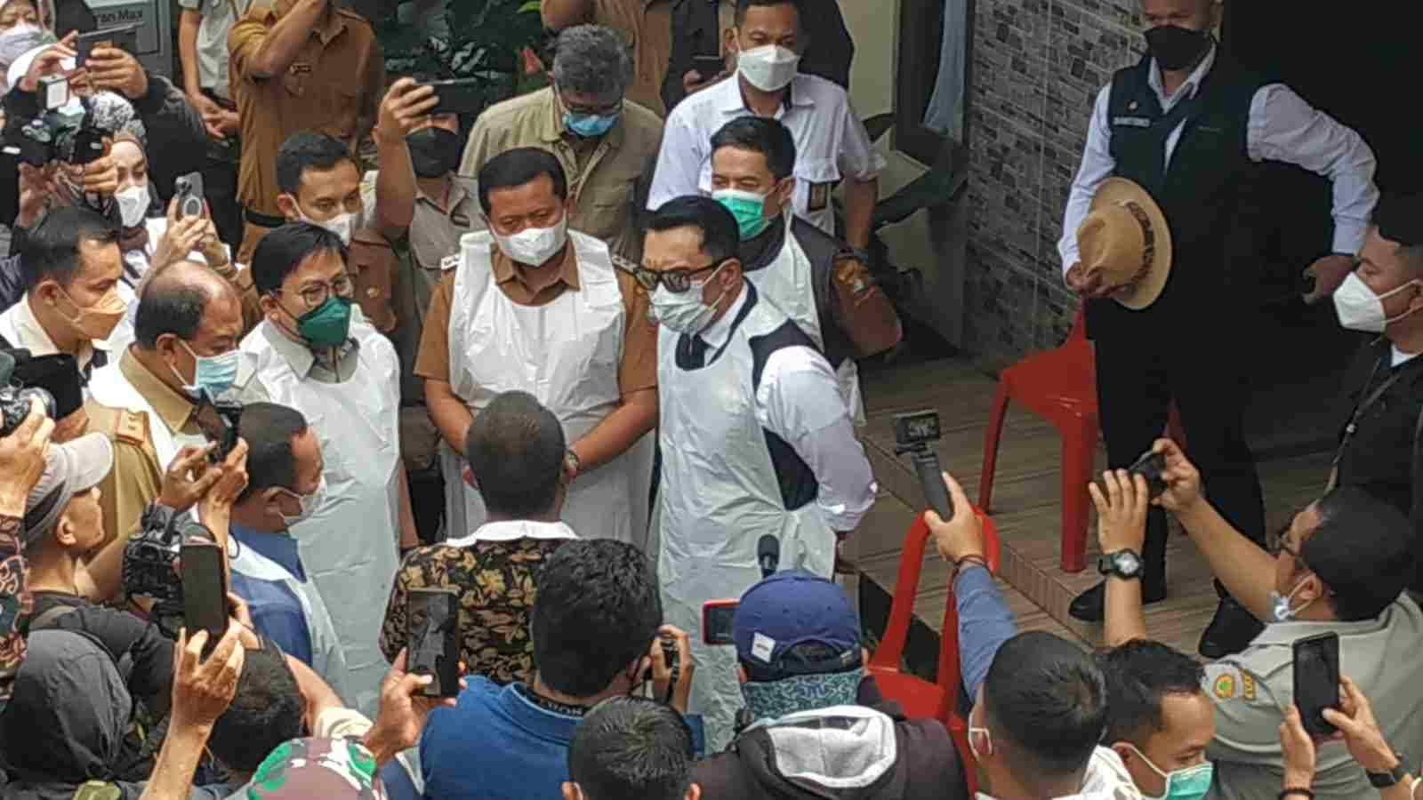 KORSUM.ID – Jelang Idul Adha 2022, Gubernur Jawa Barat Ridwan Kamil atau yang akrab disapa Kang Emil bersama Bupati Sumedang Dony Ahmad Munir, meninjau proses vaksinasi Penyakit Mulut dan Kuku (PMK) bagi hewan ternak di Dusun Babakan Anjun Pangjugjugan Desa Cilembu Kecamatan Pamulihan Kabupaten Sumedang, Senin (20/6/2022).
